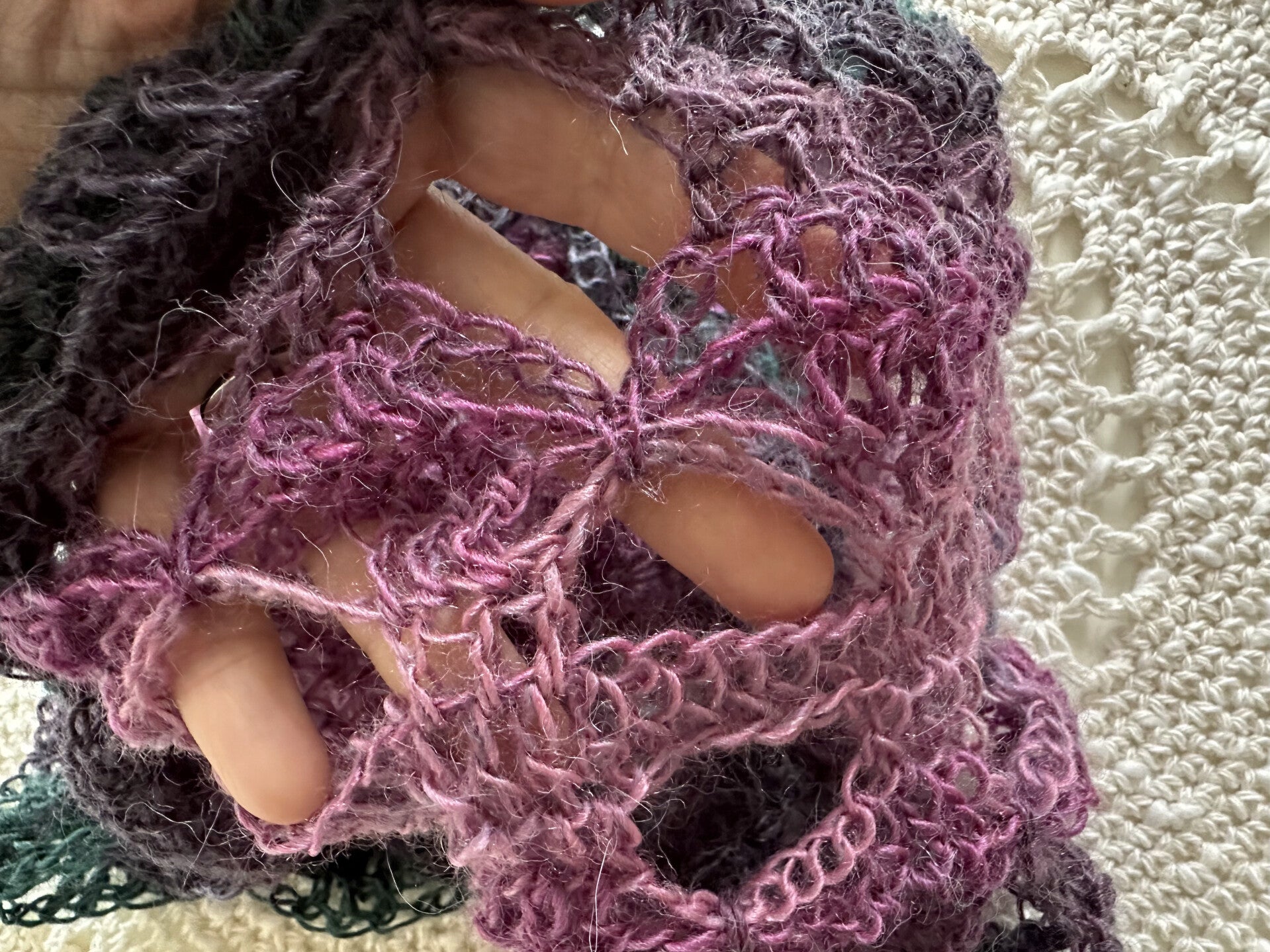 De vlinderpatroontjes zijn speels, de kantachtige structuur geeft zowel warmte als luchtigheid en oogt heel mooi. En het kleurverloop is super.