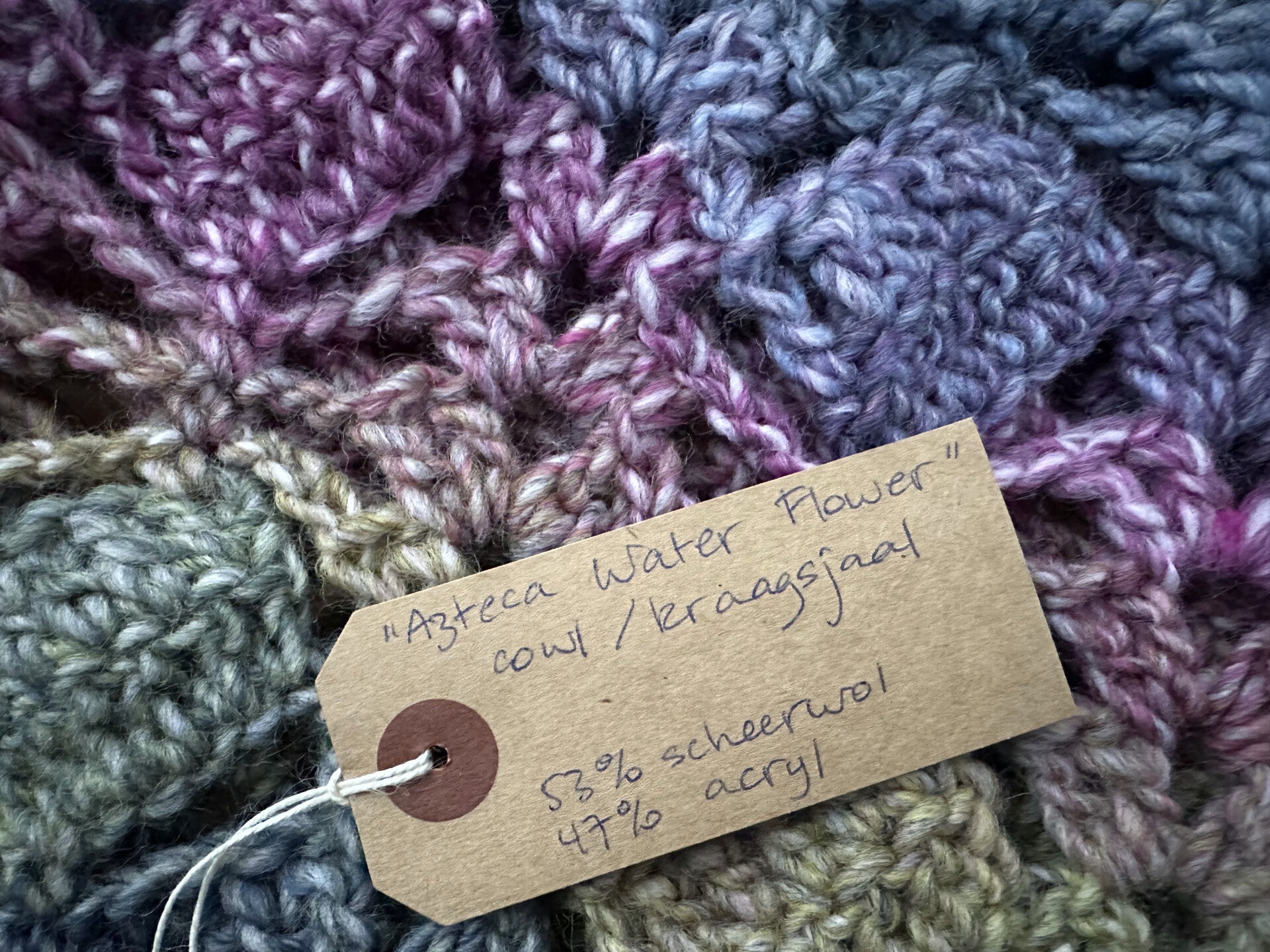 (Opgelet: op de foto’s zie je hetzelfde model in 2 verschillende kleurschakeringen. De 2 kraagsjaals worden apart verkocht. Deze heet Azteca Earth Flower, de andere is de Azteca Water Flower).