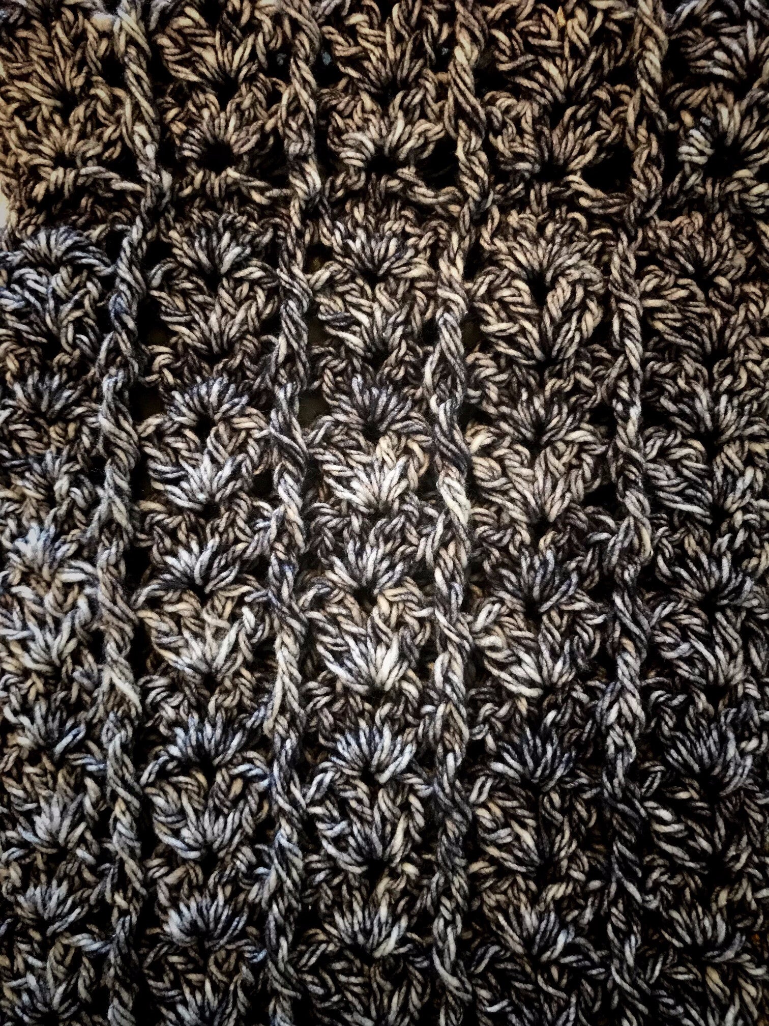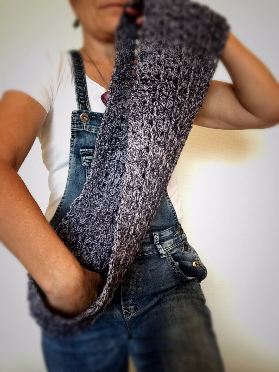 De kleurnuances - licht en donker - zijn subtiel maar geven een unieke ‘touch’ aan deze sjaal.