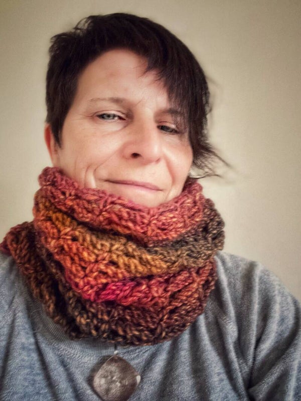 Cowl / kraagsjaalB: (rondomrond) 32cmH: 37cmGezelligheid troef met deze beschermende, knusse kraagsjaal. 53% scheerwol47% acryl